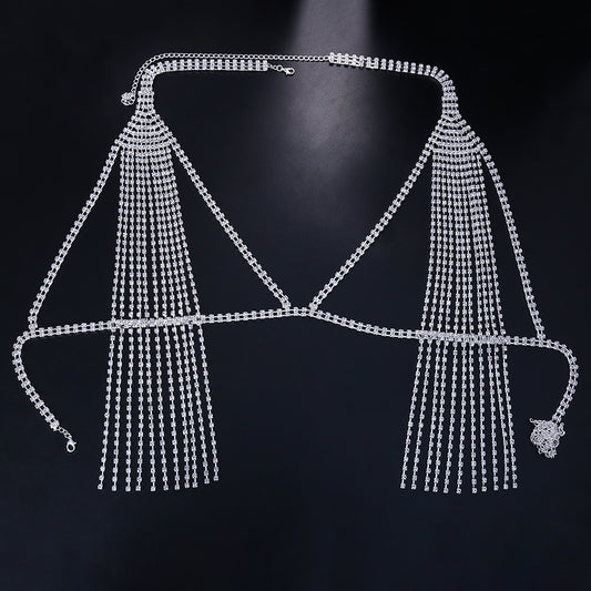 Poolside Shiny Rhinestone Long Tassel Waist Chain Set